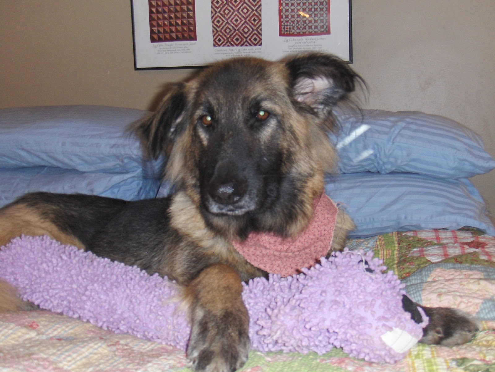Pretty Girl came to us as an underweight scared little thing. She has overcome her timidity. She is a kissing machine! She loves nothing more than running around the house giving big slappy licks to everyone. I don’t think anyone appreciates it. While she tries to ingratiate herself into the pack, she has one ally. Loki is becoming her play pal as the videos show. Please excuse the mess, it was early and I hadn’t had time to clean up.