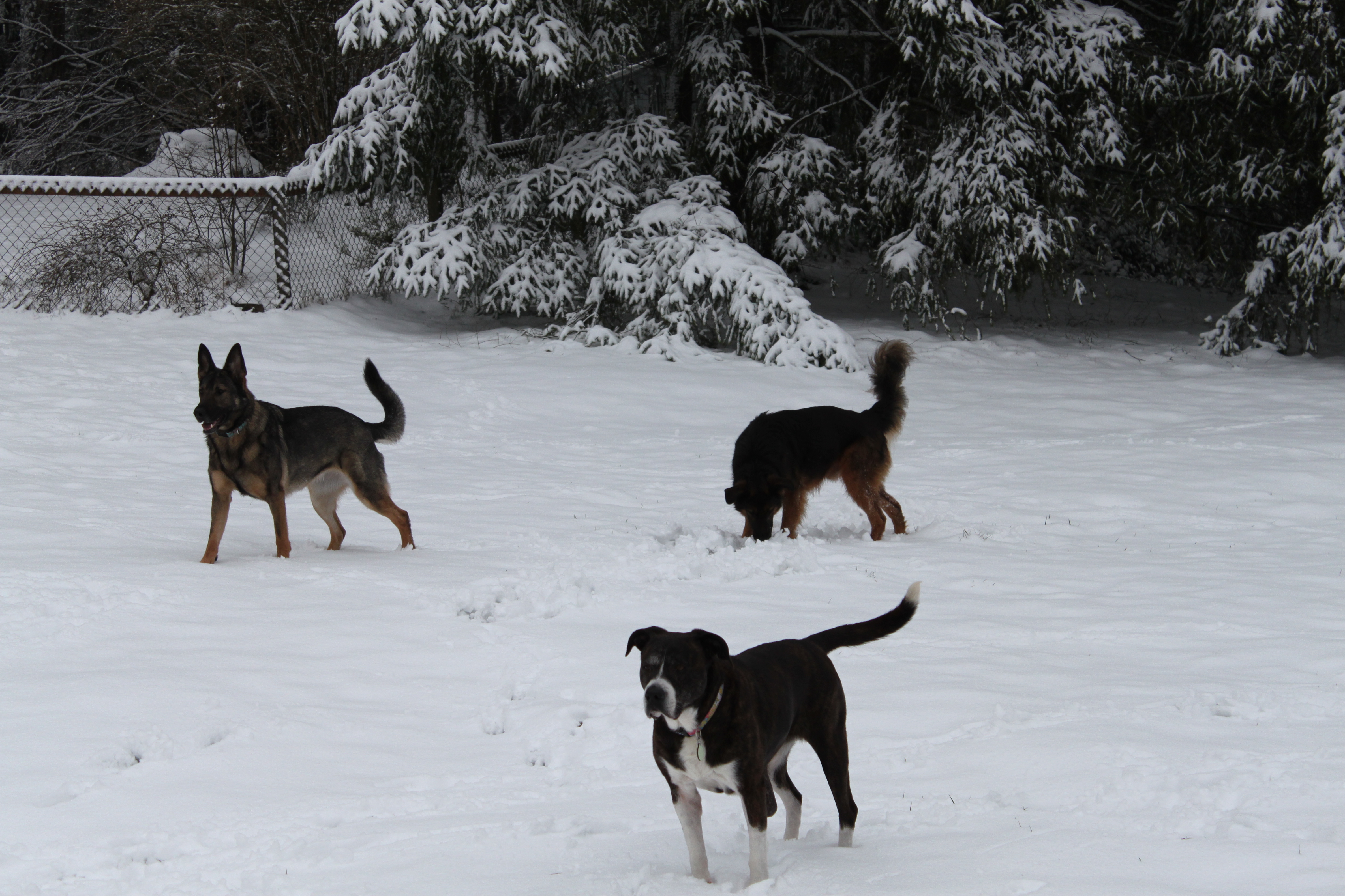 Here in the Pacific Northwest we don’t see a lot of snow, so when we do, it is fun for all! We spent the morning playing chase and find the ball and all sorts of other games taking advantage of a few inches of snow on the ground. Here’s your warning, there are lots of pictures ahead.