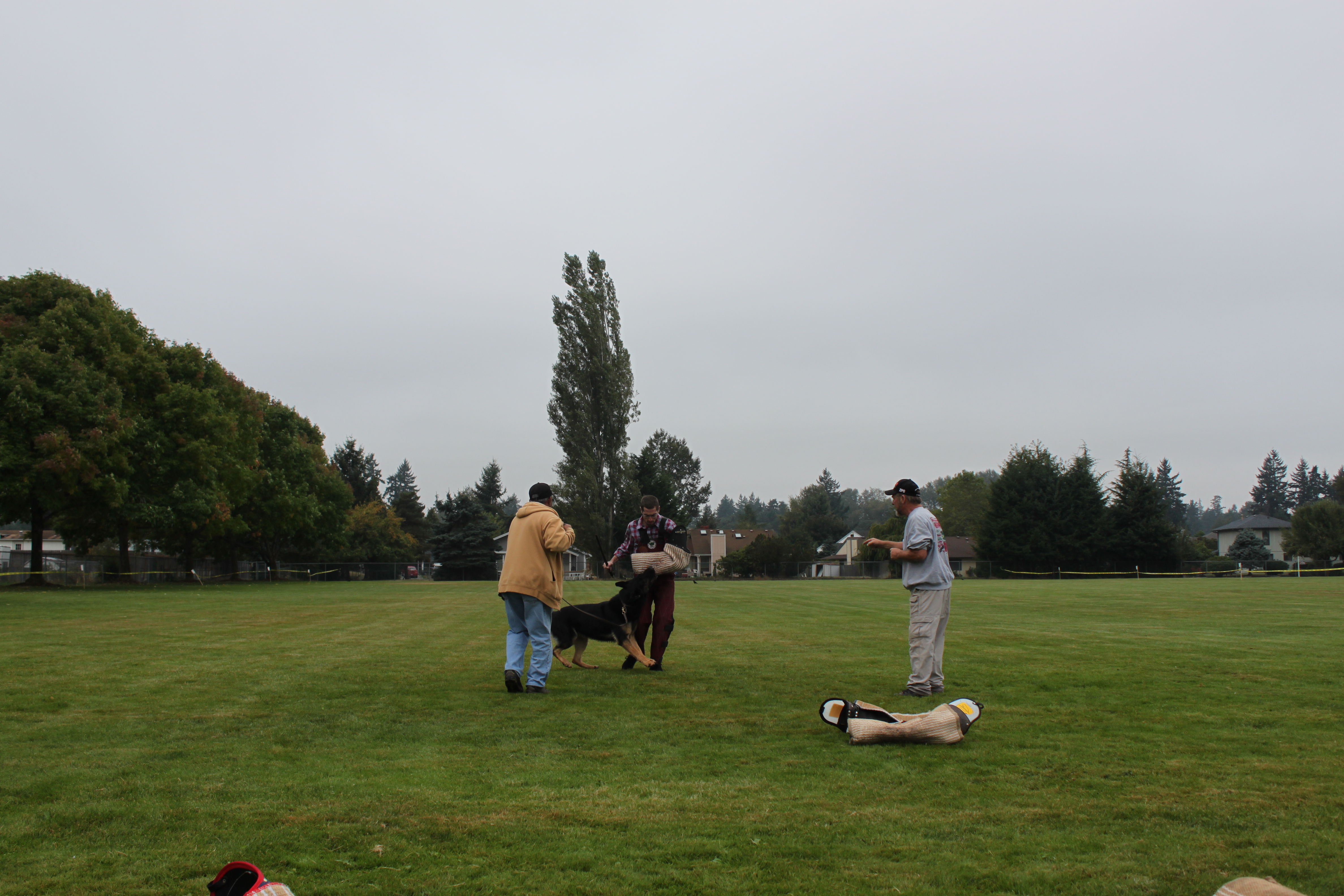 It was the last weekend of summer and started in perfect Pacific Northwest fashion; cold, damp, and overcast. A small group of about a dozen people gathered for the Regional Helper Seminar hosted by Twin County Schutzhund Club. Mark Chaffin, a 30+ year vet of the sport of schutzhund was the Teaching Helper.