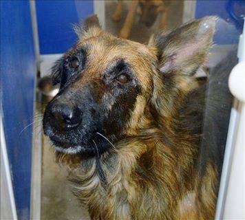 He was picked up as a stray weighing in at less than fifty pounds on a frame built for ninety to one hundred. He had several health issues aside from near starvation; bad teeth, skin and coat issues, an auto-immune syndrome, and worst of all a terrible case of hip dysplasia. He spent three months in the care of one of the rescue’s vets, living in a small crate where they tried to help him beat the worst of his issues. He was originally to come live with us for a week or so, to have a last place where he was loved and cared for other than a vet or shelter before going back to the vet for the final solution.