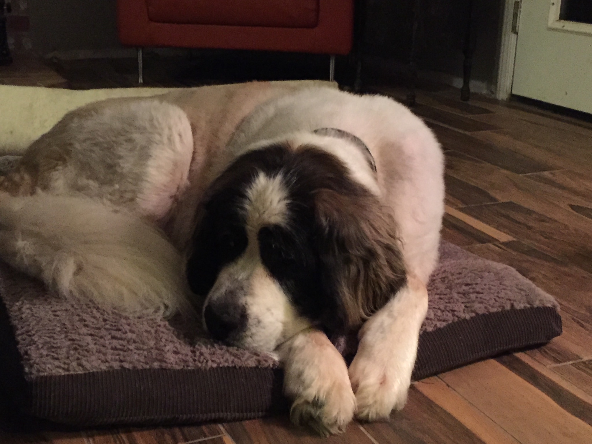 A couple weeks ago, a sweet older lady moved into our house. Tasha was abandoned by her previous owners when they moved and left the 10 year old Saint Bernard locked in a garage. A kind neighbor began taking care of her, but was unable to keep her. The good Samaritan helped her put on some weight, beat a flea infestation, and get back on her feet, then contacted Old Dog Haven to help her find a new home. That led her to us.