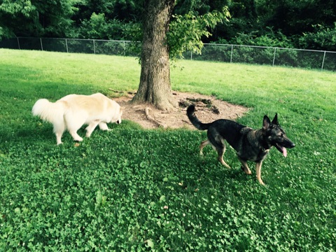 Look close: there’s a guard dog (sleeping) in there.Waiting for his turn at training.Pixie making friends at Doris Day Dog Park.Daisy and PixieExploring like a brave dog.Aren’t I cute?Penelope