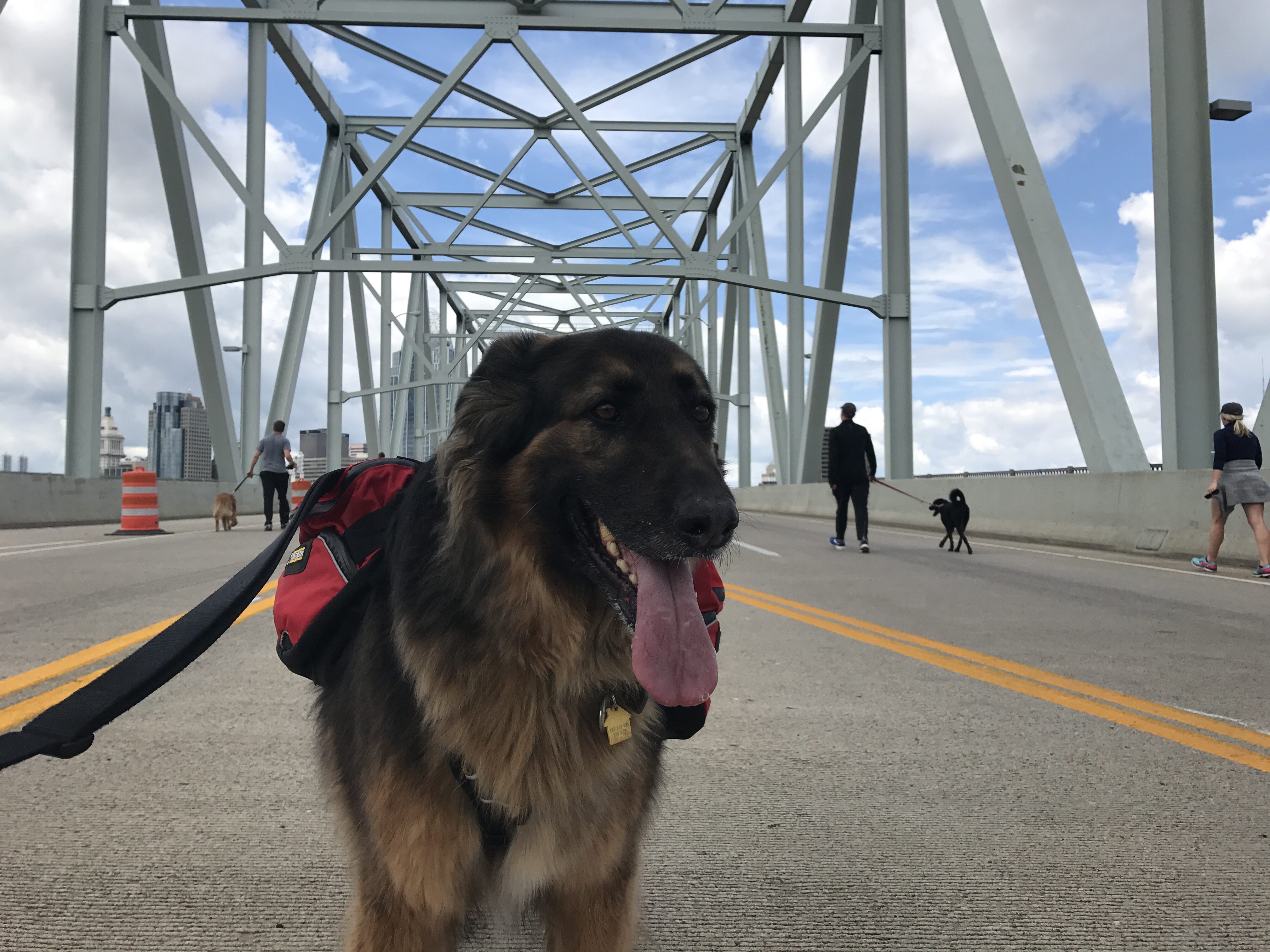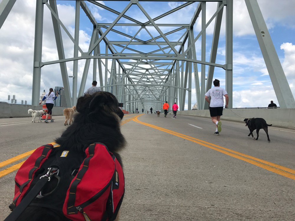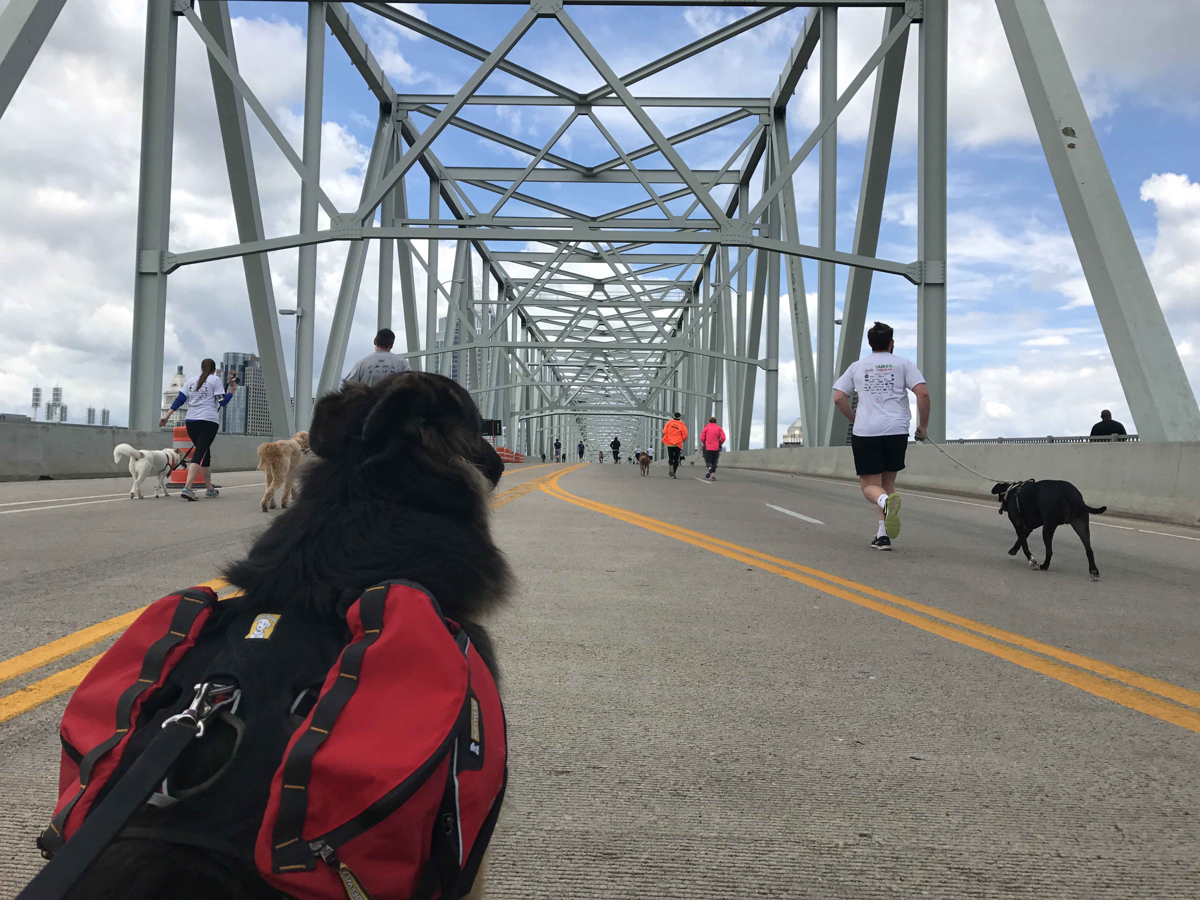 A day being outside and getting good exercise. That bridge looks a little intimidating but you all handled it beautifully 🙂 My Jack Russell probably would have panicked and refused to go across.