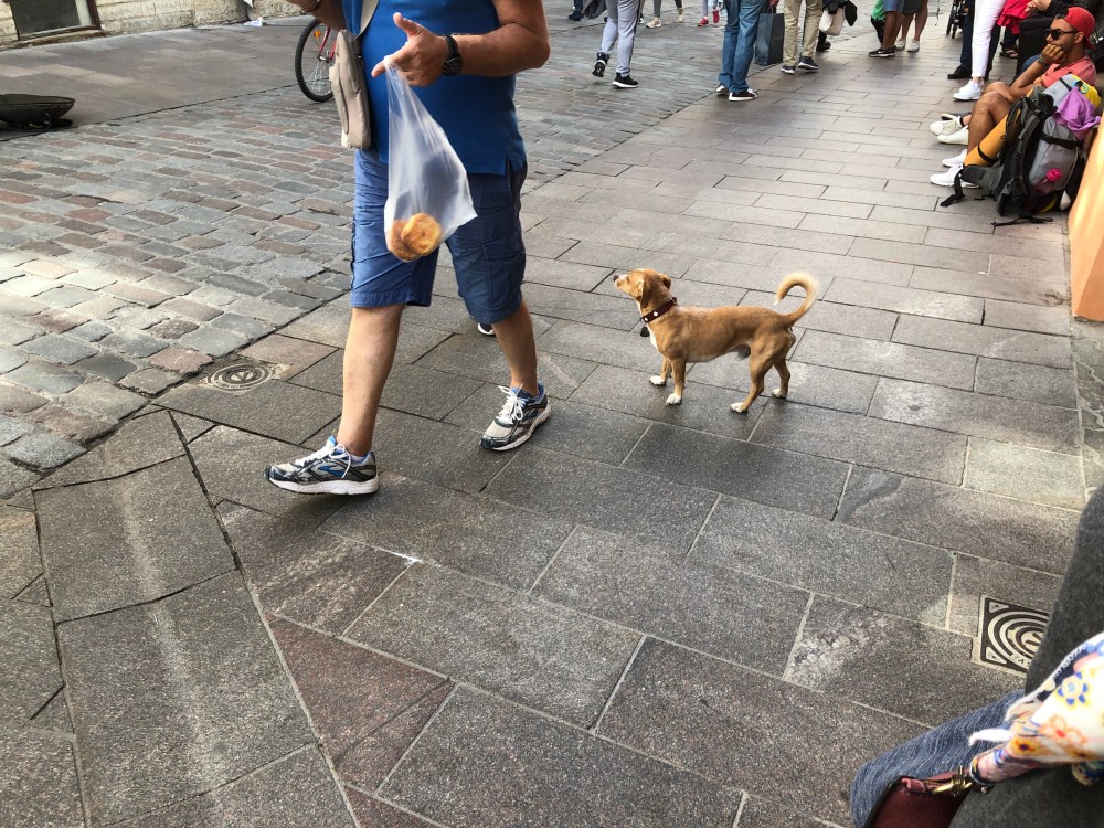 Dogs are welcome almost everywhere. We did see a couple places where they were off limits, but very few. Dogs are required to be on leash in the city, although a few ranged out on their own as we saw in Old Town. You can take your pup onto public transportation. As with many places in Europe, a dog is required to be muzzled while riding a train or bus, not because the dog may be a threat, but simply as a safety measure. It is a stark difference compared to the reaction I get when I am out with my muzzled dog in the US. As we saw in Saint Petersburg, dogs are also common characters in the artwork. Seems instagram may not be all that groundbreaking when it comes to people wanting to show off their pups.