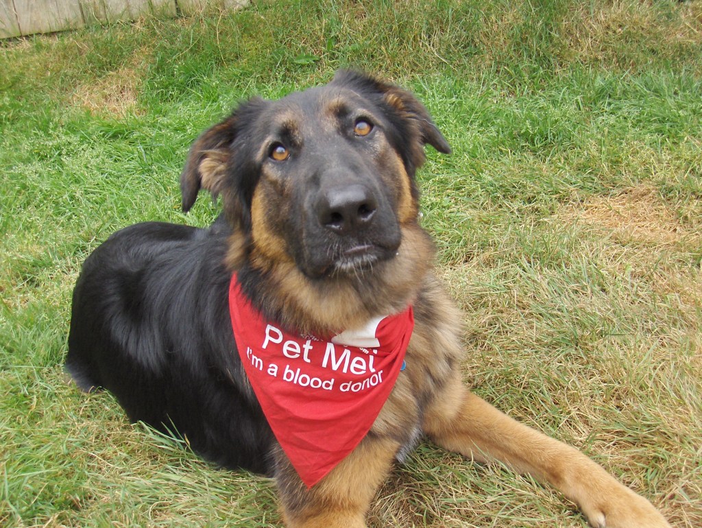 Over the next years, he trained with me as I developed my skills as a dog trainer. He became my demo dog to showcase my skills, he was my calm dog to train reactive rovers. We tried our hand (and paw) at nosework, agility, fitness training, SAR, and schutzhund. He loved posing for pictures. I know how crazy that sounds, but when I would get the camera out and tell him to do something, climb a boulder or lay by a statue, he would do it with gusto, flair, and a smile on his face. He was a blood donor and was closing in on 30 donations when he aged out of the program. He posed for their fundraising calendar and even appeared on tv and radio (with a bark) to encourage pet owners to sign up their cats or dogs.