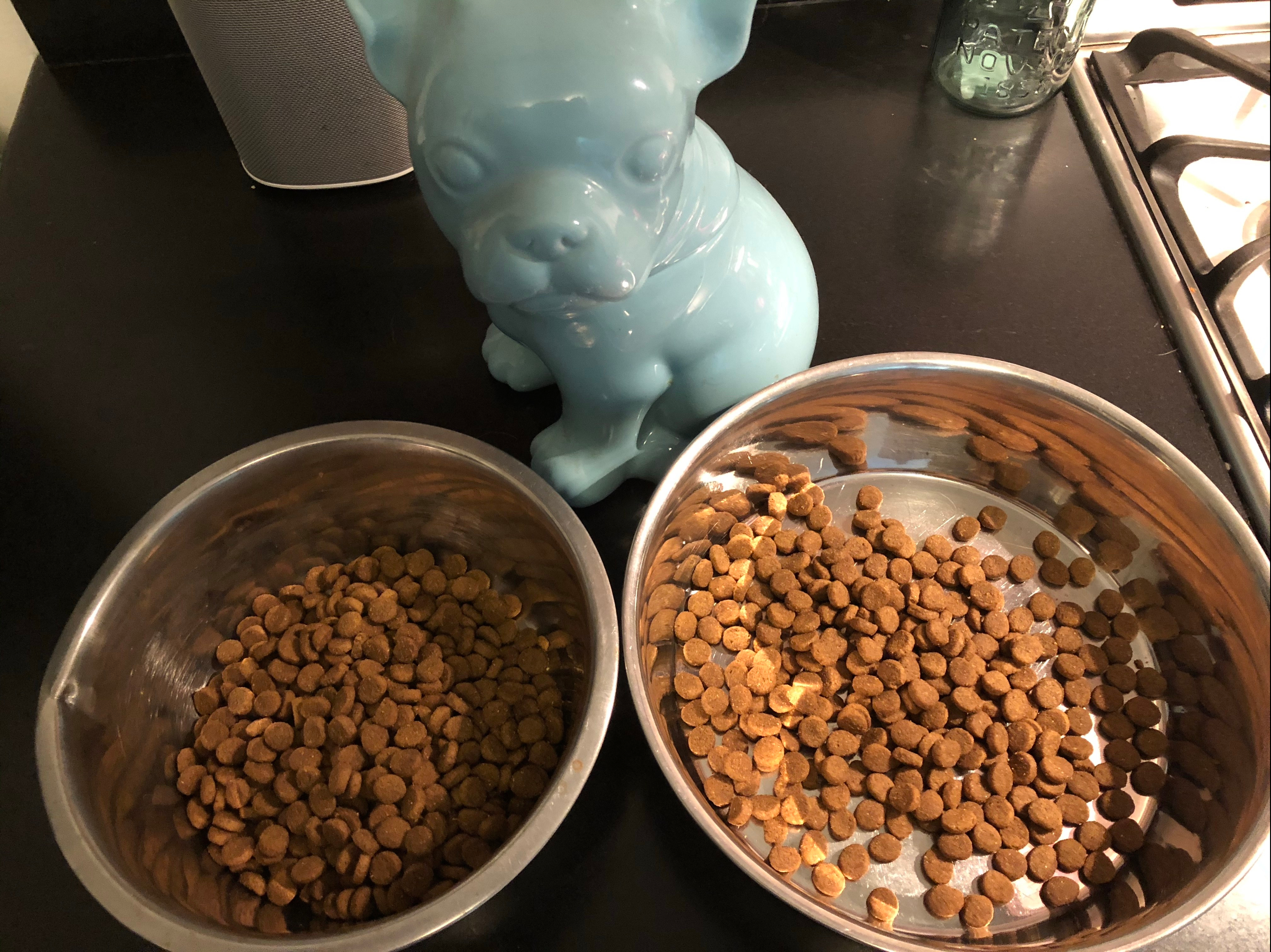 One last bit of advice for keeping a healthy weight dog. If you are feeding with a bowl, change to the smallest size your dog can comfortably eat from. This has nothing to do with your dog’s perspective, but yours. If the bowl looks mostly empty, you are more likely to put extra food in it. If possible, you might want to ditch the bowl altogether and use your dog’s food as training rewards so he has to earn his kibble.