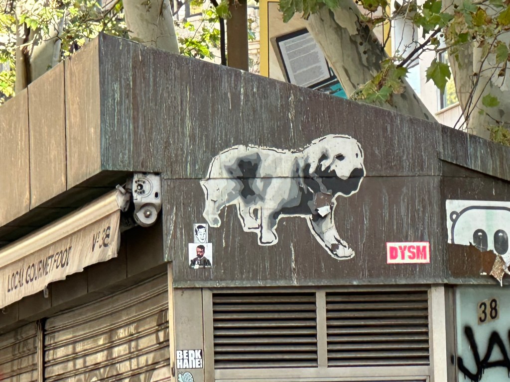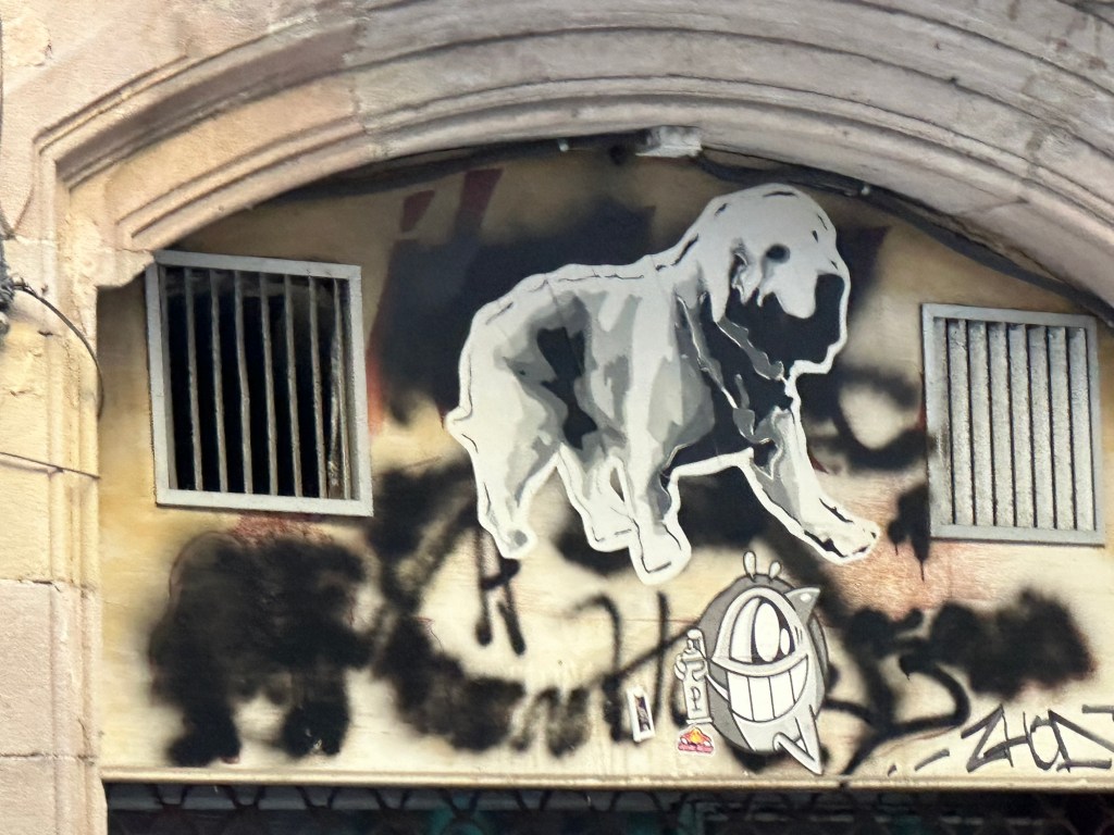 While walking through Barcelona, I spotted this golden retriever again and again. He (or she) was everywhere. On a wall, above a doorway, on a sign.