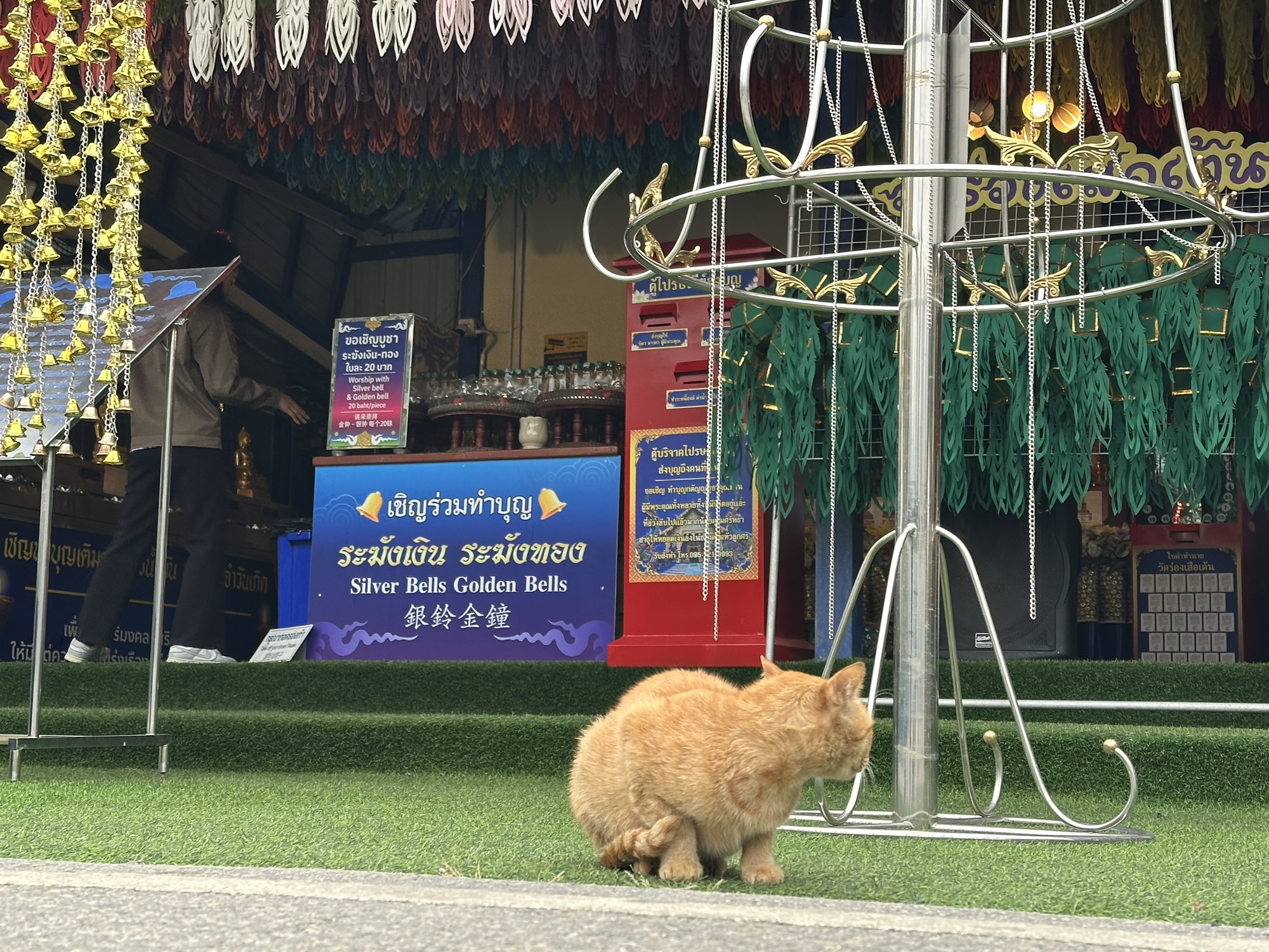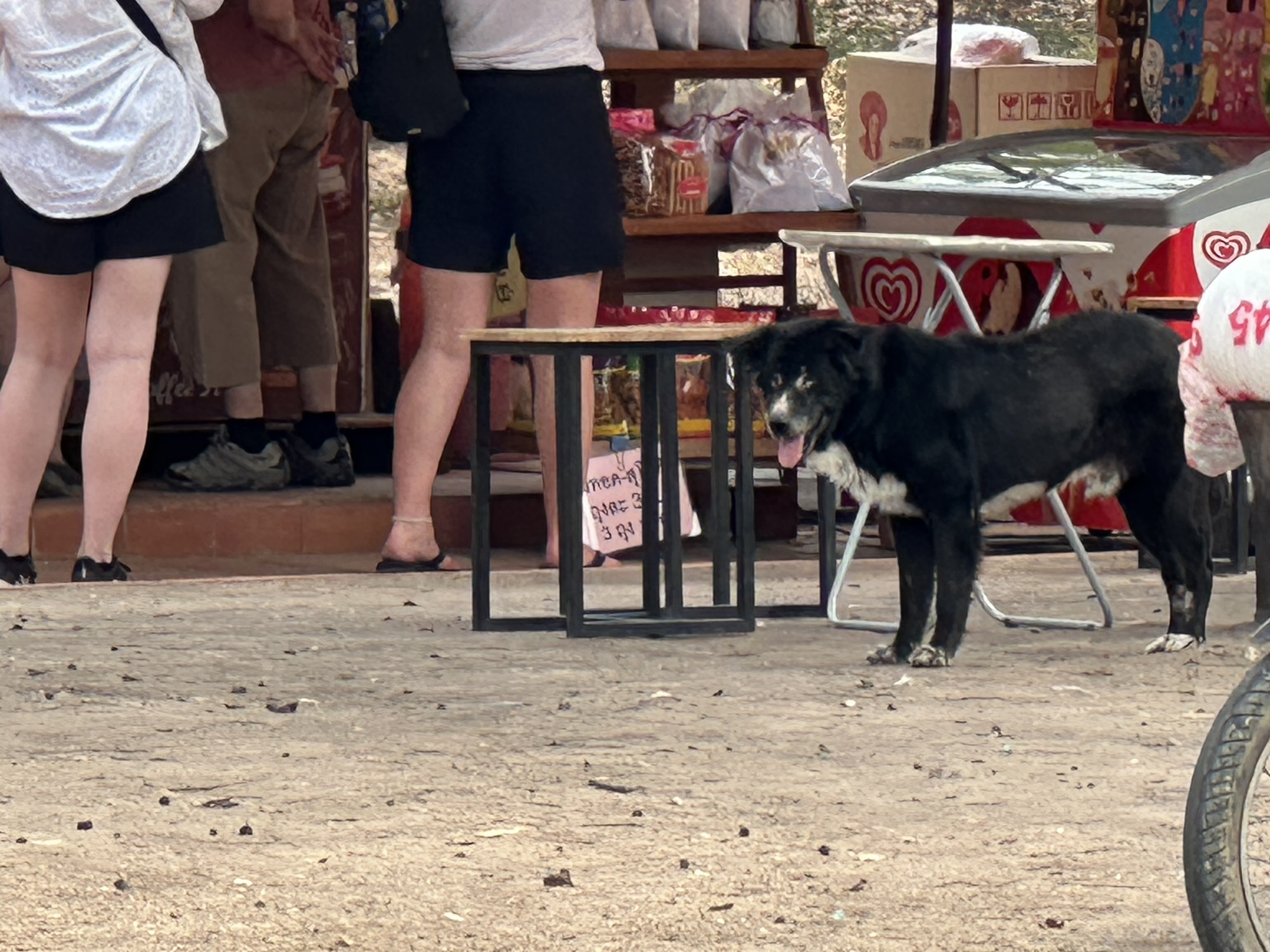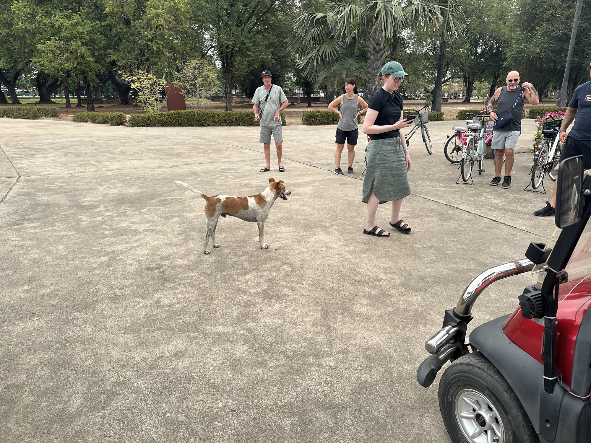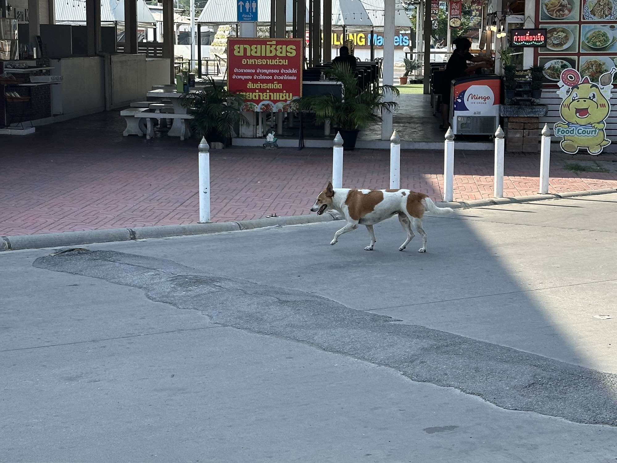 A day later though, we were headed to Thailand. We definitely saw a lot of dogs there. Unfortunately, very few were “owned” dogs. Most were street dogs, casually living their lives on the edges of society. Most people seemed to take little notice of the strays. Here and there, mostly in the tourist areas, we saw signs saying (in English) DO NOT FEED THE DOGS. We traveled from Bangkok north through several cities and a rustic village (which I felt was kind of a tourist trap) and the dogs were everywhere, including at least a couple in the artwork. I did note that there were far fewer in the old art than you see in European art. As you look at the pictures, there are several shots that look like the same dog. It is not. Each of these are different dogs, with the exception of two pictures of the dogs at the guard shack.