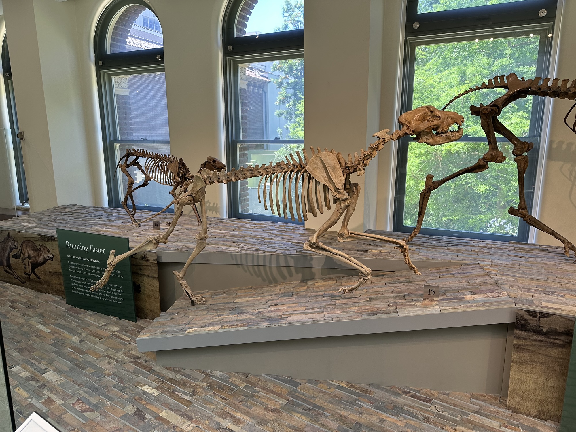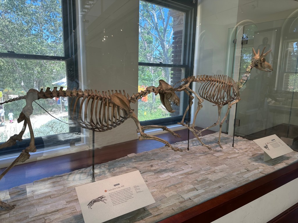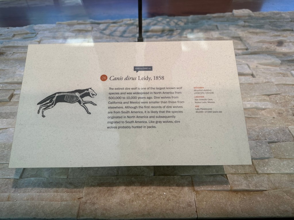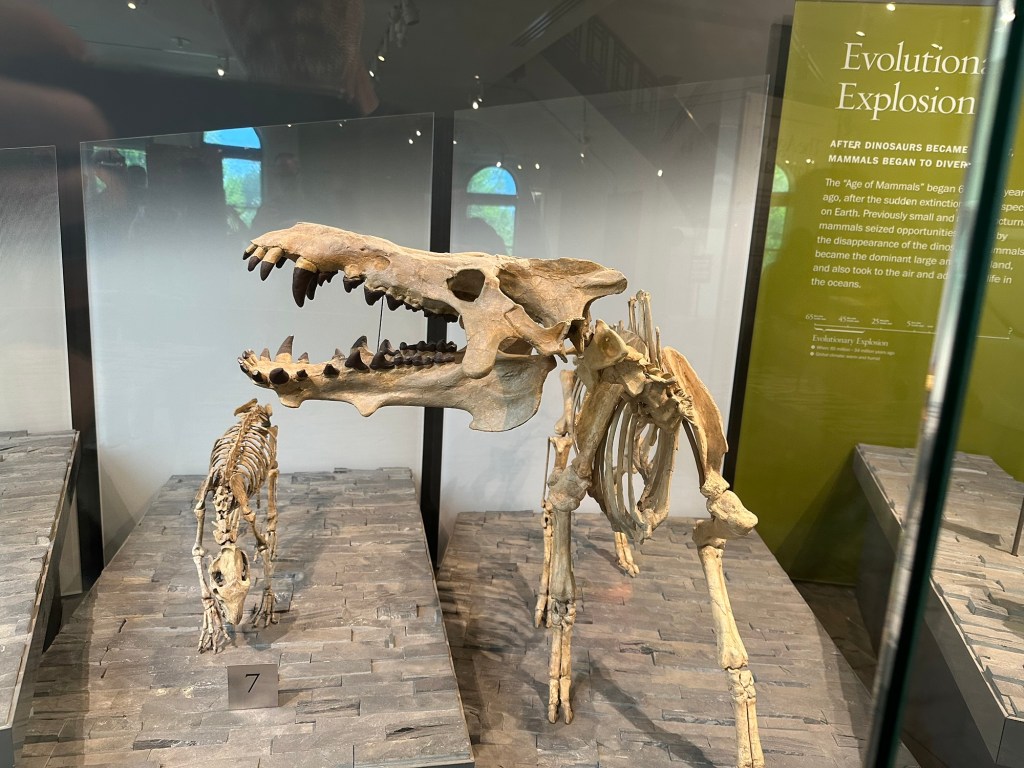 The Age of Mammals exhibition contains some amazing examples of the largest mammals to roam the earth. This includes several displays of the canid family. It is interesting that you can take a look at the large dogs, posed in hunting postures on one side of the room, then step over to see the evolution of the human species tracking along the same timeline. We have truly been “best friends” for millenia.