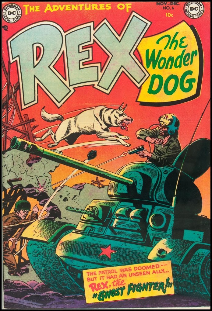 Both of those super-pups were preceded by Rex, the Wonder Dog, entering the comic book world in 1952. Created by Robert Kanigher of Wonder Woman fame and artist Alex Toth, he starred in his own eponymous bi-monthly series for several years. Rex is a White Shepherd dog who spent his early years in the U.S. Army’s K-9 Corps, alongside his brother, Pooch. Early in his training it became apparent that Rex had great potential, which resulted in his getting selected as a test subject for a super-soldier serum. He battled Nazis during the war years then was adopted by a nice family and became a crime fighter before fading into obscurity. He made a brief comeback in 1977 and has only made sporadic appearances since then.
