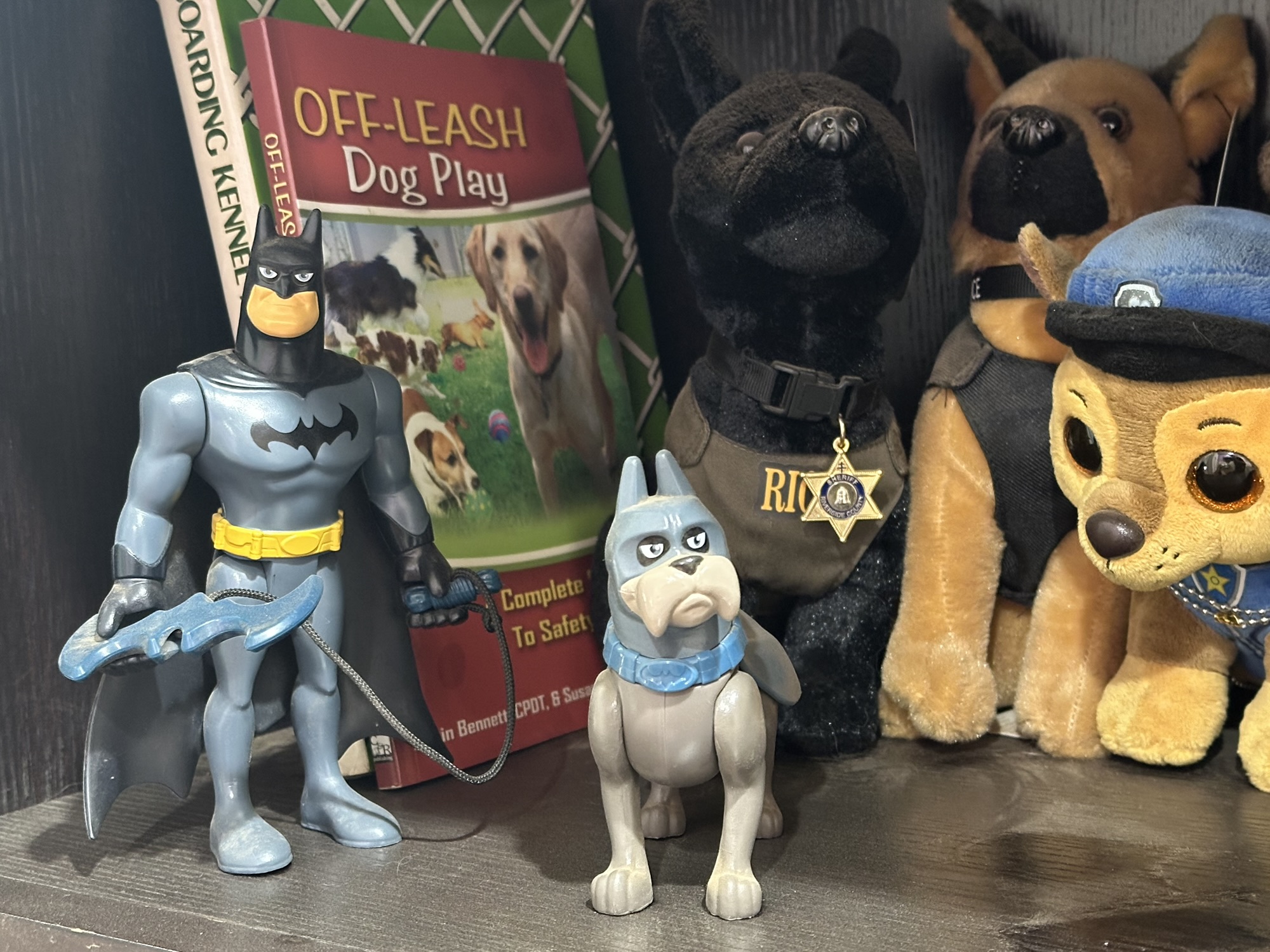The other DC icon, Batman, was also a dog owner. Ace the German Shepherd, also known as Bat-Hound because of course, made his first appearance in Batman #92 just months after and probably inspired by, Krypto. After helping the Dark Knight in several adventures, he vanished into the doghouse until 1991. That version of Ace was introduced in the DC Rebirth era, as a former guard dog of the Joker who was later adopted by Alfred Pennyworth. Ace has also been a guide dog, a dog-fighting ring survivor, and even a companion for an old Bruce Wayne. Currently, the Super-Pets version of Ace the Boxer stands guard on my bookshelf.