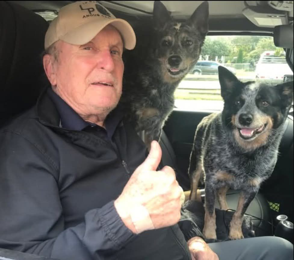 He had dogs most of his life, including most recently, a couple Blue Heelers.